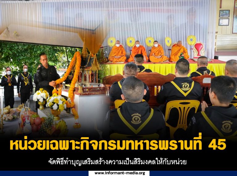หน่วยเฉพาะกิจกรมทหารพรานที่ ๔๕ จัดพิธีทำบุญเสริมสร้างความเป็นสิริมงคลให้กับหน่วย