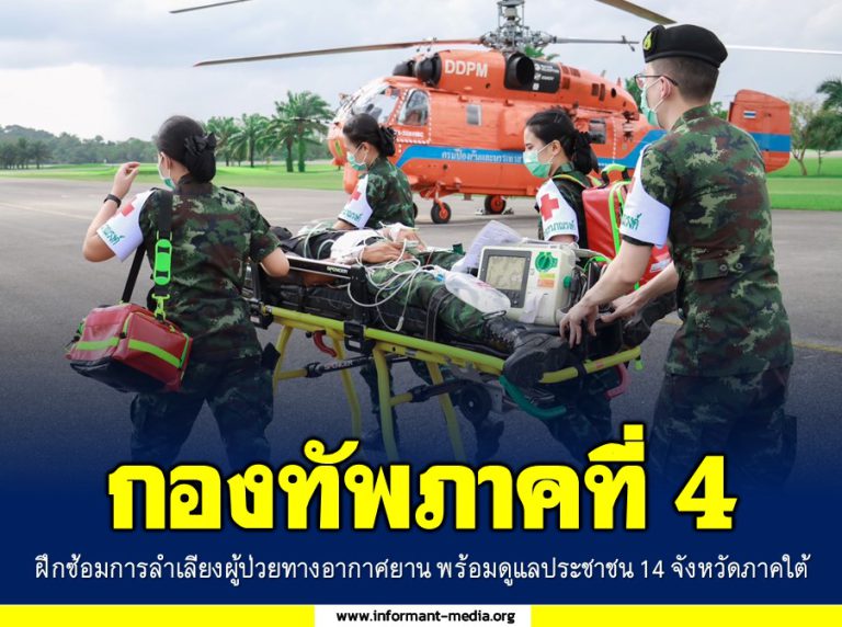 กองทัพภาคที่ 4 ฝึกซ้อมการลำเลียงผู้ป่วยทางอากาศยาน พร้อมดูแลประชาชน 14 จังหวัดภาคใต้