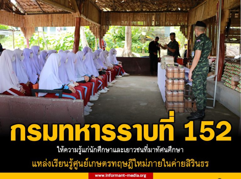 กรมทหารราบที่ 152 ให้ความรู้แก่นักศึกษาและเยาวชนที่มาทัศนศึกษา แหล่งเรียนรู้ศูนย์เกษตรทฤษฎีใหม่ภายในค่ายสิรินธร