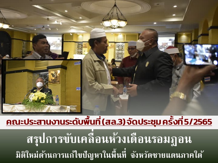 คณะประสานงานระดับพื้นที่ (สล.3) จัดประชุม ครั้งที่ 5/2565 สรุปการขับเคลื่อนห้วงเดือนรอมฎอน มิติใหม่ด้านการแก้ไขปัญหาในพื้นที่ จังหวัดชายแดนภาคใต้