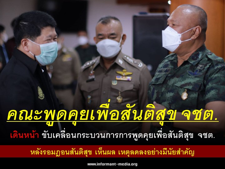 คณะพูดคุยเพื่อสันติสุข จชต. เดินหน้า ขับเคลื่อนกระบวนการการพูดคุยเพื่อสันติสุข จชต. หลังรอมฎอนสันติสุข เห็นผล เหตุลดลงอย่างมีนัยสำคัญ