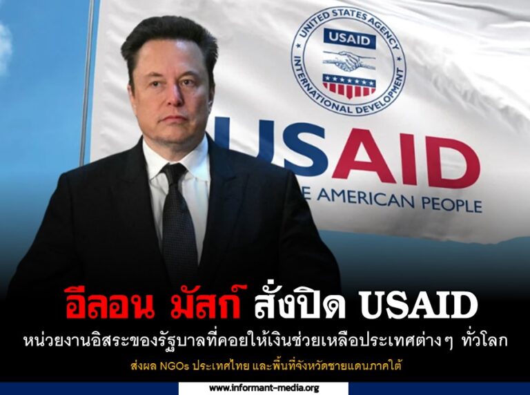 อีลอน มัสก์ สั่งปิด USAID หน่วยงานอิสระของรัฐบาลที่คอยให้เงินช่วยเหลือประเทศต่างๆ ทั่วโลก ส่งผล NGOs ประเทศไทย และพื้นที่จังหวัดชายแดนภาคใต้