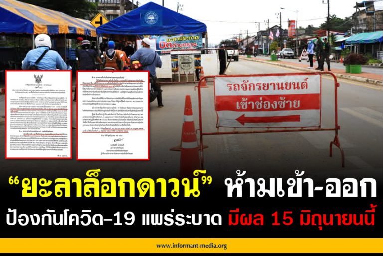 ยะลาล็อกดาวน์ ห้ามเข้า-ออก ป้องกันโควิด-19 แพร่ระบาด มีผล 15 มิถุนายนนี้