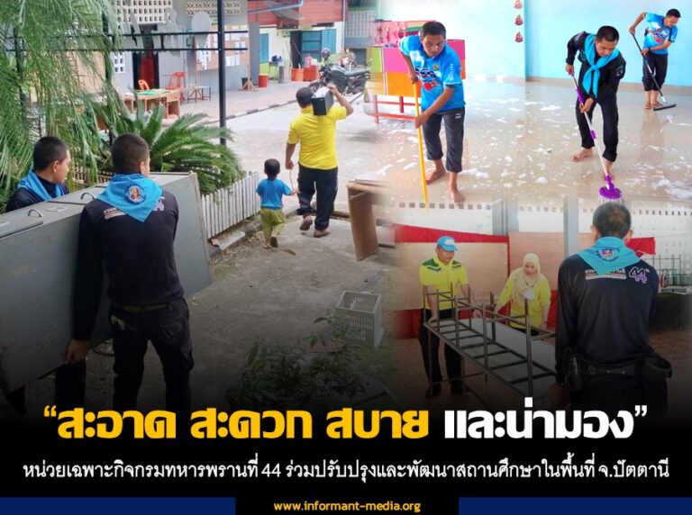 “สะอาด สะดวก สบาย และน่ามอง” หน่วยเฉพาะกิจกรมทหารพรานที่ 44 ร่วมปรับปรุงและพัฒนาสถานศึกษาในพื้นที่ จ.ปัตตานี
