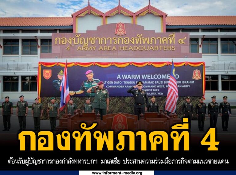 กองทัพภาคที่ 4 ต้อนรับผู้บัญชาการกองกำลังทหารบกสนามภาคตะวันตกมาเลเซีย ประสานความร่วมมือภารกิจตามแนวชายแดน