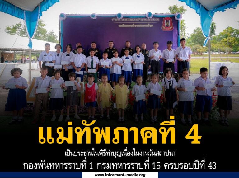 แม่ทัพภาคที่ 4 เป็นประธานในพิธีทำบุญเนื่องในงานวันสถาปนา กองพันทหารราบที่ 1 กรมทหารราบที่ 15 ครบรอบปีที่ 43