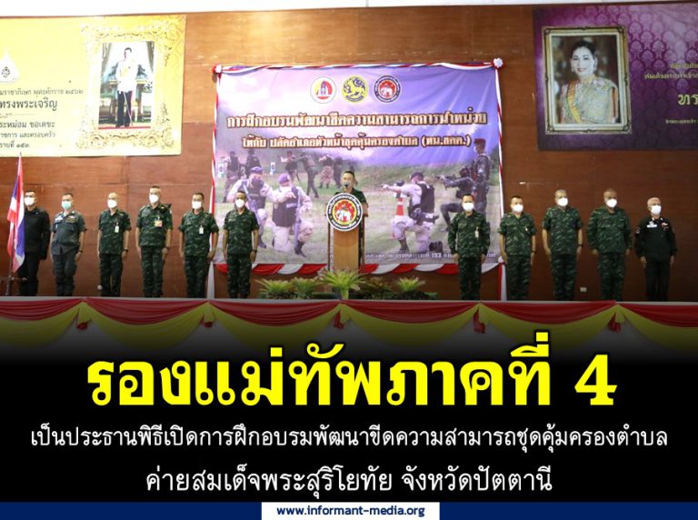 รองแม่ทัพภาคที่ 4 เป็นประธานพิธีเปิดการฝึกอบรมพัฒนาขีดความสามารถชุดคุ้มครองตำบล ณ ค่ายสมเด็จพระสุริโยทัย จังหวัดปัตตานี