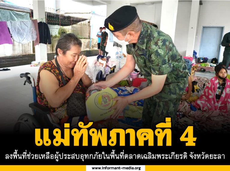 แม่ทัพภาคที่ 4 ลงพื้นที่ช่วยเหลือผู้ประสบอุทกภัยในพื้นที่ตลาดเฉลิมพระเกียรติ จังหวัดยะลา