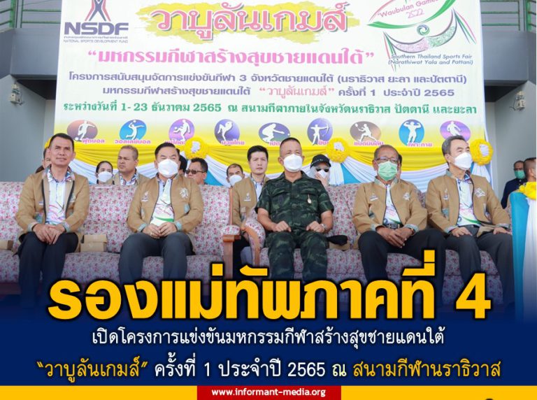 รองแม่ทัพภาคที่ 4 เปิดโครงการแข่งขันมหกรรมกีฬาสร้างสุขชายแดนใต้ “วาบูลันเกมส์” ครั้งที่ 1 ประจำปี 2565 ณ สนามกีฬานราธิวาส