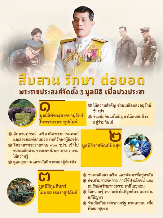 สืบสาน รักษา ต่อยอด พระราชประสงค์จัดตั้ง 3 มูลนิธิ เพื่อปวงประชา ด้วยพระราชปณิธาน ขจัดทุกข์ บำรุงสุข ให้แก่ราษฎร