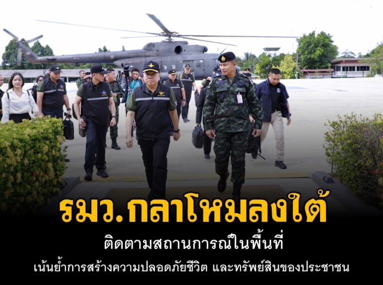 รมว.กลาโหมลงใต้ ติดตามสถานการณ์ในพื้นที่ เน้นย้ำการสร้างความปลอดภัยชีวิต และทรัพย์สินของประชาชน