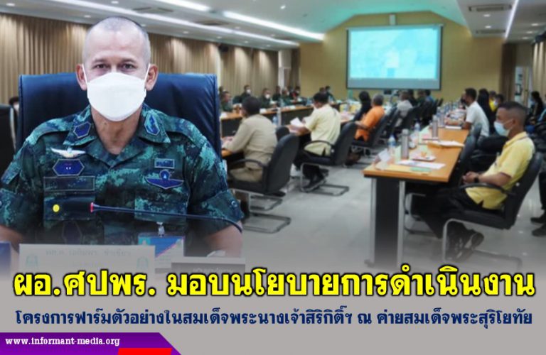ผอ.ศปพร. มอบนโยบายการดำเนินงานโครงการฟาร์มตัวอย่างในสมเด็จพระนางเจ้าสิริกิติ์ฯ ณ ค่ายสมเด็จพระสุริโยทัย
