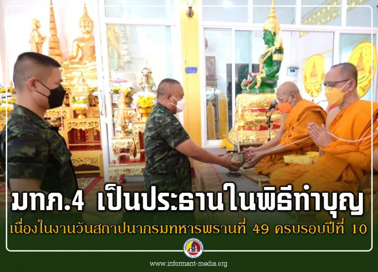 แม่ทัพภาคที่ 4 เป็นประธานในพิธีทำบุญเนื่องในงานวันสถาปนากรมทหารพรานที่ 49 ครบรอบปีที่ 10