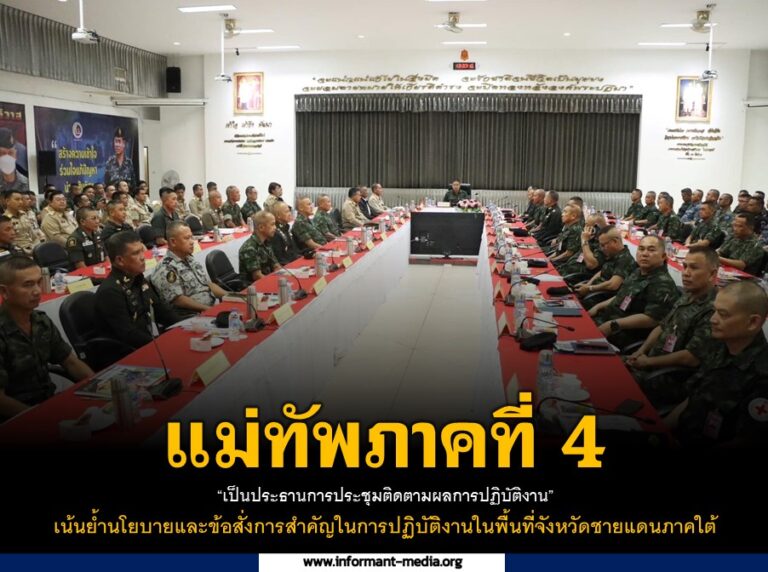 แม่ทัพภาคที่ 4 “เป็นประธานการประชุมติดตามผลการปฏิบัติงาน” เน้นย้ำนโยบายและข้อสั่งการสำคัญในการปฏิบัติงานในพื้นที่จังหวัดชายแดนภาคใต้