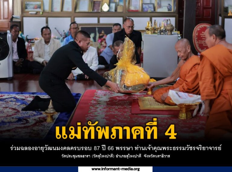 แม่ทัพภาคที่ 4 ร่วมฉลองอายุวัฒนมงคลครบรอบ 87 ปี 66 พรรษา ท่านเจ้าคุณพระธรรมวัชรจริยาจารย์ วัดประชุมชลธารา (วัดสุไหงปาดี) อำเภอสุไหงปาดี จังหวัดนราธิวาส
