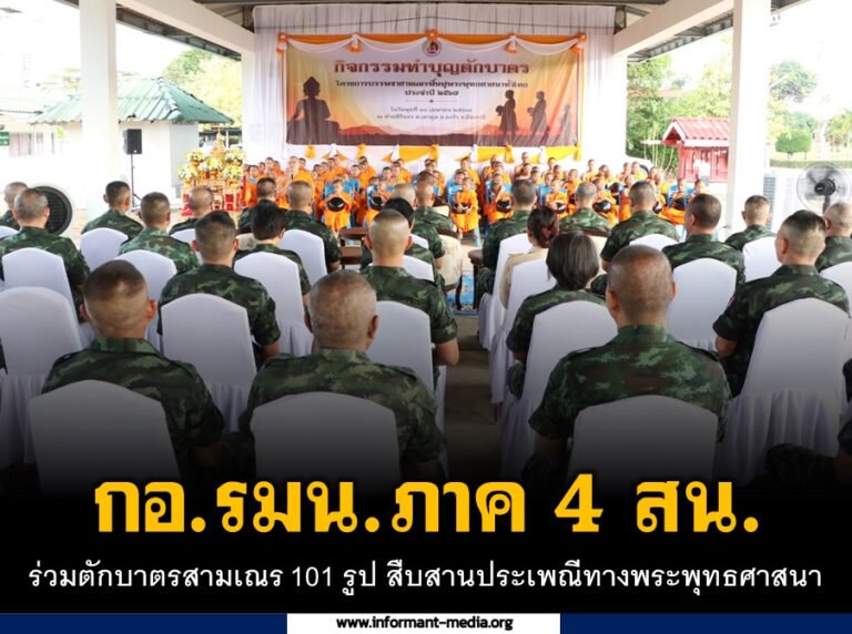 กอ.รมน.ภาค 4 สน. ร่วมตักบาตรสามเณร 101 รูป สืบสานประเพณีทางพระพุทธศาสนา