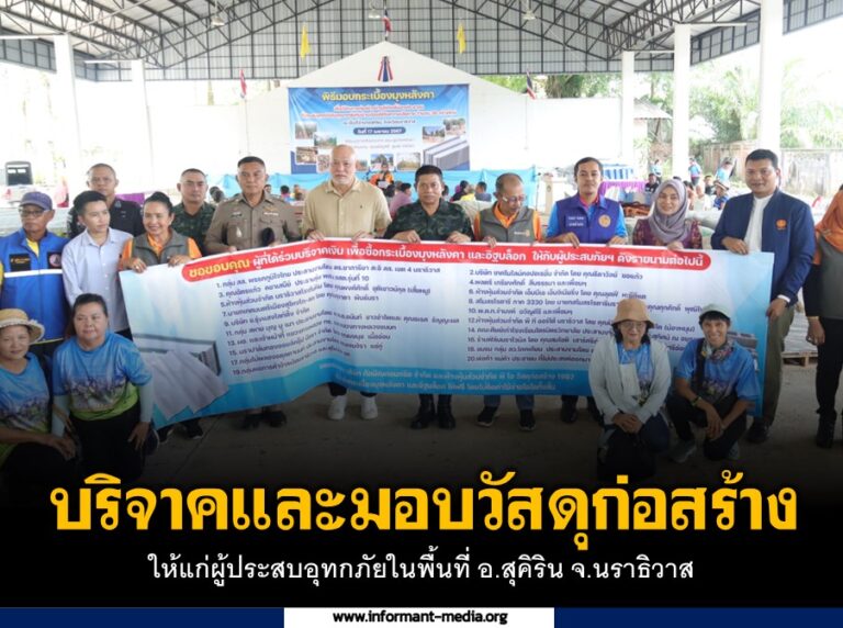 บริจาคและมอบวัสดุก่อสร้าง ให้แก่ผู้ประสบอุทกภัยในพื้นที่ อ.สุคิริน จ.นราธิวาส