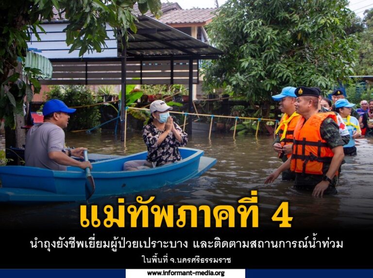 แม่ทัพภาคที่ 4 นำถุงยังชีพเยี่ยมผู้ป่วยเปราะบาง และติดตามสถานการณ์น้ำท่วมในพื้นที่ จ.นครศรีธรรมราช