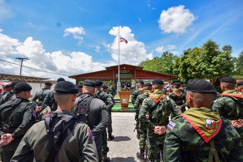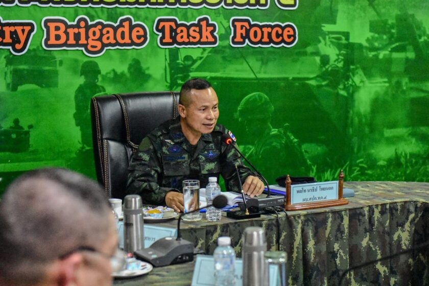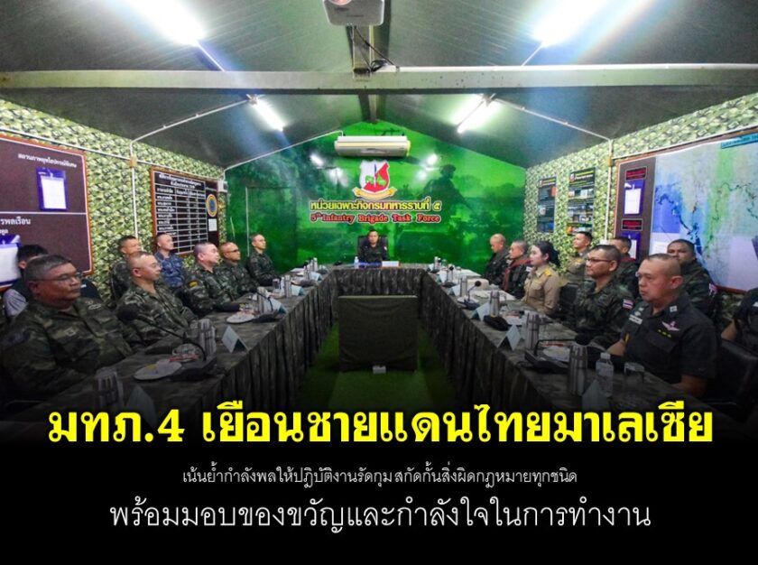 วันที่ 5 พ.ย. 68 ที่หน่วยเฉพาะกิจกรมทหารราบที่5 พ.อ.ทวีพร คณะทอง ผบ.ฉก.ร.5 พ.ต.อ.สุรจิต เพชรจอม ผกก.สภ.สะเดา พ.ต.อ. คมเทพ เปาอินทร์ ผกก.สภ.ปาดังเบซาร์ นางสาว ณัฐกานต์ สายน้อย นอภ.สะเดา ส่วนราชการในพื้นที่ร่วมให้การต้อนรับ พล.ท. นรธิป โพยนอก มทภ.4/ผบ.ศปก.ทภ.4 พร้อมด้วยคณะฯ ในโอกาสเดินทางมาตรวจเยี่ยมหน่วยที่ปฏิบัติงานป้องกันชายแดนไทย – มาเลเซีย ในพื้นที่ อ.สะเดา และ อ.นาทวี จ.สงขลา โดยได้ฟังคำบรรยายสรุปผลการปฏิบัติงานป้องกันชายแดนไทย – มาเลเซีย และ การดำเนินงานที่สำคัญ ของหน่วย ฉก.ร.5 พร้อมกันนี้ได้พบปะให้โอวาทแก่กำลังพล ที่ปฏิบัติงานในพื้นที่ตามแนวชายแดน ไทย – มาเลเซีย พร้อมกับมอบของบำรุงขวัญกำลังใจและเน้นย้ำการทำงานสกัดกั้นสิ่งผิดกฎหมายทุกชนิด