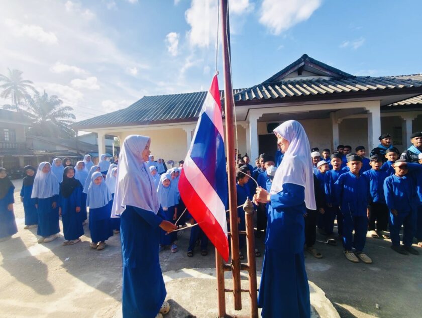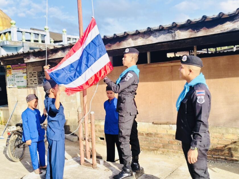 วันที่ 25 มกราคม 2569 เวลา 08.00 น. หน่วยเฉพาะกิจกรมทหารพรานที่ 49 นำโดย ร้อยเอก สุภาพ มณีฉาย ผู้บังคับกองร้อยทหารพรานที่ 4912 พร้อมด้วยกำลังพลชุดปฏิบัติการกิจการพลเรือน เข้าพบปะครูและนักเรียนศูนย์การศึกษาอิสลามประจำมัสยิด (ตาดีกา) ร่วมจัดกิจกรรม “เสาธง 5 นาที” เพื่อปลูกฝังอุดมการณ์ความรักชาติ ศาสนา พระมหากษัตริย์ และเสริมสร้างจิตสำนึกหน้าที่ของเยาวชนที่ดีของสังคม
