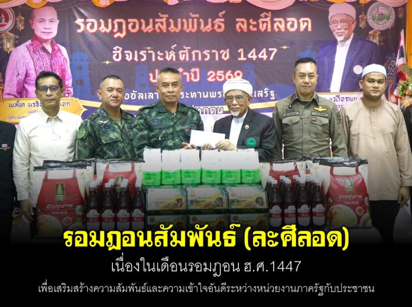 วันที่ 5 มีนาคม 2569 เวลา 18.00 น. ณ สำนักงานคณะกรรมการอิสลามประจำจังหวัดปัตตานี อำเภอหนองจิก จังหวัดปัตตานี พลตรี เฉลิมพงค์ คงบัว เลขาธิการกองอำนวยการรักษาความมั่นคงภายในภาค 4 ส่วนหน้า เป็นประธานเปิดกิจกรรม โครงการรอมฎอนสัมพันธ์ (ละศีลอด) เนื่องในเดือนรอมฎอน ฮ.ศ. 1447 เพื่อเสริมสร้างความสัมพันธ์และความเข้าใจอันดีระหว่างหน่วยงานภาครัฐกับประชาชน บนพื้นฐานสังคมพหุวัฒนธรรมและการอยู่ร่วมกันอย่างสันติสุข พร้อมสนับสนุนการปฏิบัติศาสนกิจของพี่น้องชาวไทยมุสลิมในเดือนอันประเสริฐ โดยมี ดร.แวดือราแม มะมิงจิ ประธานกรรมการอิสลามประจำจังหวัดปัตตานี, ว่าที่ร้อยตรี จิริส ศิริวัลลภ รองผู้ว่าราชการจังหวัดปัตตานี พร้อมด้วย ผู้บังคับหน่วยเฉพาะกิจปัตตานี หัวหน้าส่วนราชการ ผู้นำศาสนา ผู้นำท้องถิ่น ตลอดจนเครือข่ายภาคประชาสังคม และประชาชนในพื้นที่เข้าร่วมอย่างพร้อมเพรียง